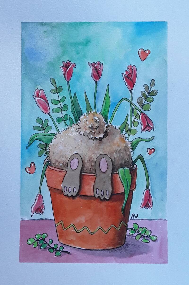 Afmeting papier (A5) 200 grams en afbeelding 12 x 16 cm.