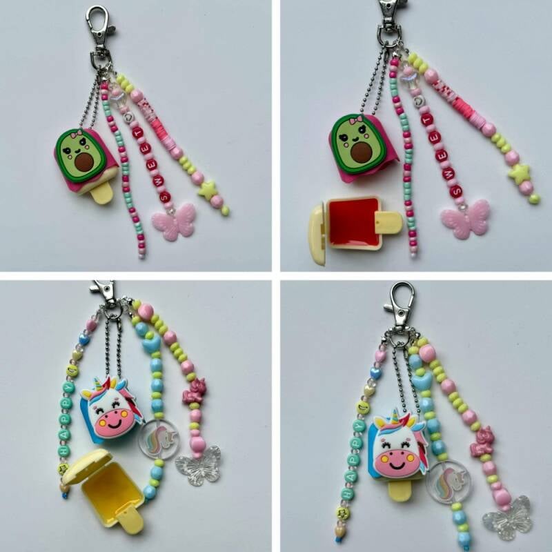 Leuke handgemaakte kleurrijke en unieke sleutel- en tassenhangers.